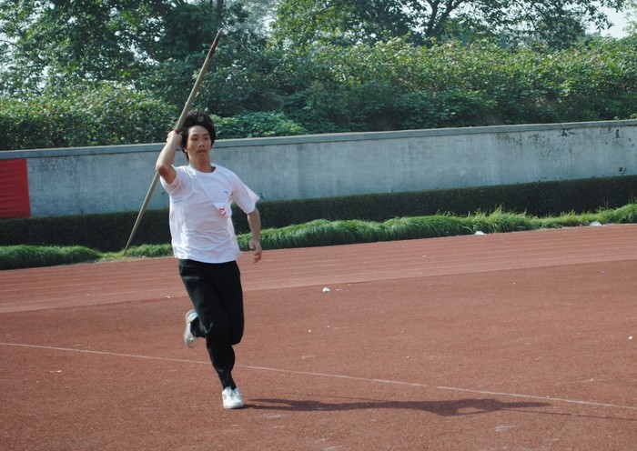 继续教育分院的李焕获得了男子标枪第一名,即将破校记录
