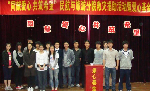 4月29日晚,“同献爱心,共筑希望”民航与旅游分院抗震救灾捐款活动暨爱心基金启动仪式在综合楼一楼报告厅举行。本次活动有幸邀请到了学院副院长、党委副书记周治斌老师出席,分院党总支副书记王贤军,班主任和学生代表参加了仪式。