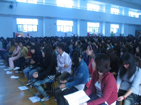 严之学勇创新 优良学风立心中      10月18日下午15:30分,经济贸易系在中学部体育馆召开了“学风建设月”活动启动仪式暨动员大会,院党委副书记、副院长周治斌,学工部长、学生处长吴寿清,教务处副处长涂三思,经贸系主任谢厚华,系党总支副书记田翔,经贸系全体教师及大一、大二计800多名学生参加了动员大会,会议由系副主任褚利主持。