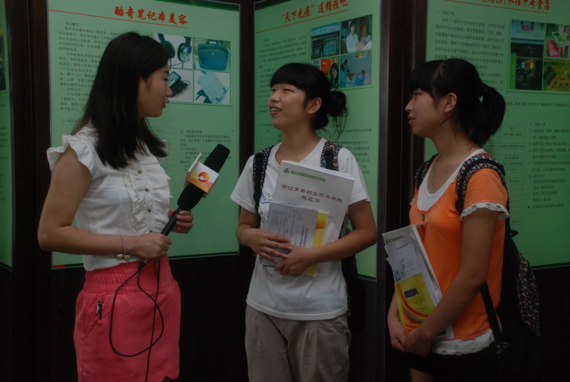 在新生报到处,老师们热情细心地给新生办理入学手续,新生们手整齐有序地排队办理。一对来自杭州的双胞胎姐妹由母亲陪着来报到,姐妹俩双双选择了市场营销专业,对于大学生活,她们怀揣美好的憧憬,也充满信心。