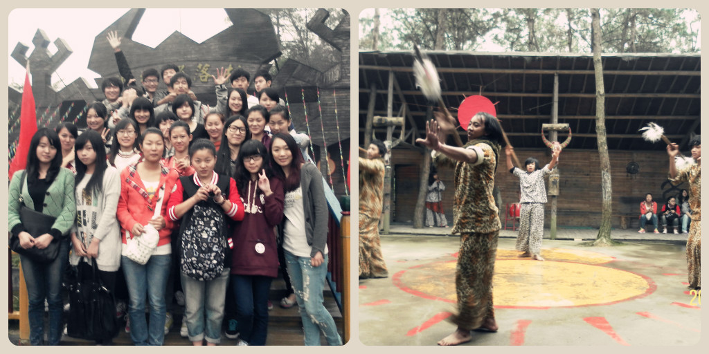 这一天的一大早,大家在校门口集合准时出发。在一路的歌声与快乐的气氛中,我们到达了安吉“神秘部落”。刚下车,大家都被这里气氛所吸引了,神秘,恐怖,刺激的感觉漂现在我们眼前,大家都忍不住拿起自己手中的相机开始拍照。