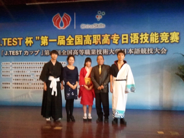 2011年10月9日—12日,“J.TEST杯”第一届全国高职高专日语技能竞赛在青岛职业技术学院举行。经济贸易系派出了由应用日语专业教研室主任张东亚和日籍外教山口康一郎为指导、3名学生为队员的参赛队。经过两天的激烈角逐,09级应用日语B班麻志浩同学在个人赛项70名选手中名列第16名、以94.564的高分获得个人赛项二等奖,另外一名10级应用日语A班李阳同学成绩90.505分,获得决赛入围奖。同时,由麻志浩、李阳和女同学费舒(10级应用日语A班)共同出演的情景剧以92.8分的成绩获得团体赛项三等奖,名列41支团体参赛队伍的第22名。