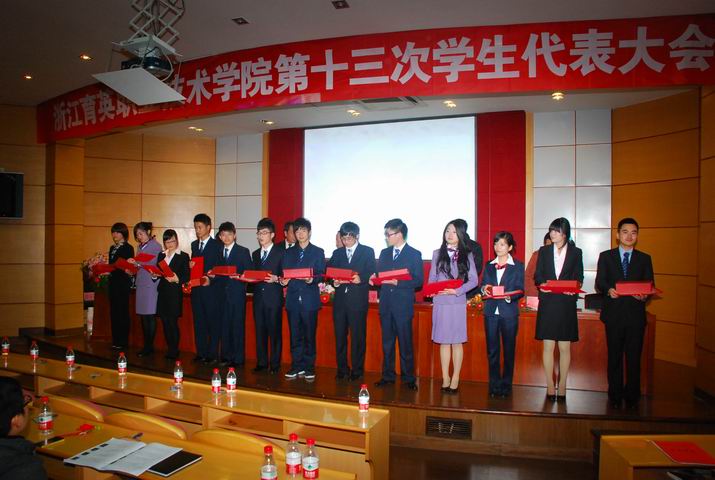 12月23日下午,学院第十三次学生代表大会在综合楼学术报告厅召开。学院党委书记、院长洪致平,副院长陈六明,副院长秦学礼,杭州市学生联合会主席徐海东同学,学生处处长王敏,团委书记邬佳,20余所在杭高校学生会主席出席大会,各院系近200余名学生代表参加会议。院学生会秘书长肖菲主持会议。邬佳致开幕词。