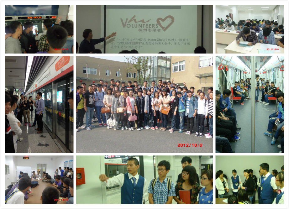 2012年10月8日上午,教研室主任赵燕和汪迎春老师对12级轨道专业的新生进行了认知实训动员,拉开了一周认知的序幕。10月9日,学生们带着迷惑、好奇、新鲜、憧憬等复杂情绪跟着实践指导老师们进入了杭州地铁七堡基地,接受 “客服大使”理论培训,由杭州志愿者协会田思宁老师和港铁资深培训师陈玉莹老师主讲,讲座围绕杭州志愿者工作以及地铁车站助理岗位展开。尤其是港铁陈老师的培训,深入浅出,案例精湛,有效浓缩了轨道专业的所有专业课程,让学生对专业和地铁车站站务员、行车值班员等岗位有了初步的了解和认知,为之后的专业课程的开展打下了较好的基础。当同学们发出强有力的“我们是志愿者”的宣誓时,令田老师感动不已。而下午的专业考试,同学们更以优异的成绩全体过关,得到了港铁方面的认可,这些都为他们以后的就业埋下了良性的种子。
