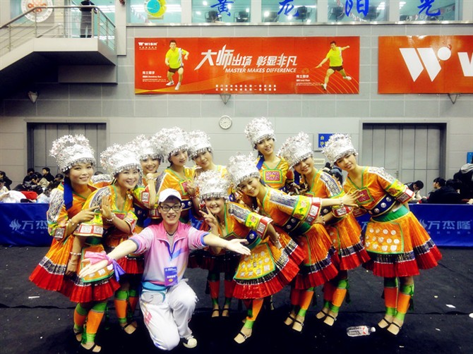 2月9日,我五点起床,一个个敲开队员们的房门,一会儿后他们就要去走台了。“今天我们要跑三次,队员们你们要加油”。我鼓励着我的队员们。晚上7点30是他们的比赛时间,主委会要求我们6点30到会场签到。随队这么多天,我还真没看过他们穿着苗族盛装,唱着比赛歌曲。这次我终于看到了,这不免有点惊讶和兴奋。我在杭州生活了20年,说实话还真没看过少数名族的姑娘们,穿着他们名族的服装,听过他们唱着自己的歌谣。