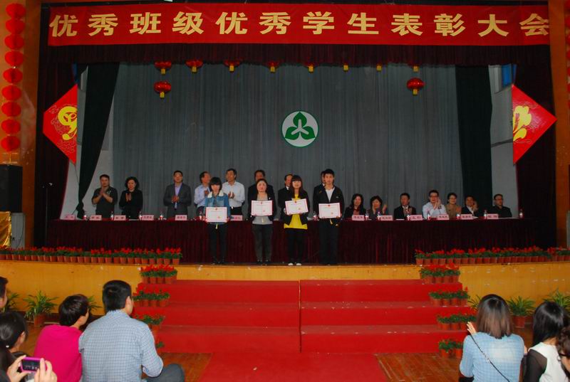 4月19日下午,学院优秀班级,优秀学生表彰大会在院体育馆隆重召开。学院党委书记、院长洪致平,党委副书记、副院长周治斌,副院长陈六明、黄爱平、秦学礼,分院、系负责人和相关职能部门以及800余名优秀学生、优秀班级代表参加会议。会议由黄爱平副院长主持。