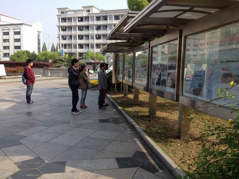 考试当天,为使学生和家长进一步了解学院,学院对宣传橱窗进行了内容更新。在介绍学院系部办学特色和学院办学成绩简介的橱窗前,考生和家长驻足观看。尤其令他们关注的是学院的“五个第一”:第一个落户下沙,十年中三位省委书记相继视察育英;第一个提出“职业人”理念,有效实践“大学生”向“职业人”的转变;第一家省内举办的空中乘务专业,是省级特色专业:荣膺多项赛事第一,个性化教育培育个性化人才;杭州日报“勇往职前”栏目组第一次走进育英,98%的就业率得到关注。