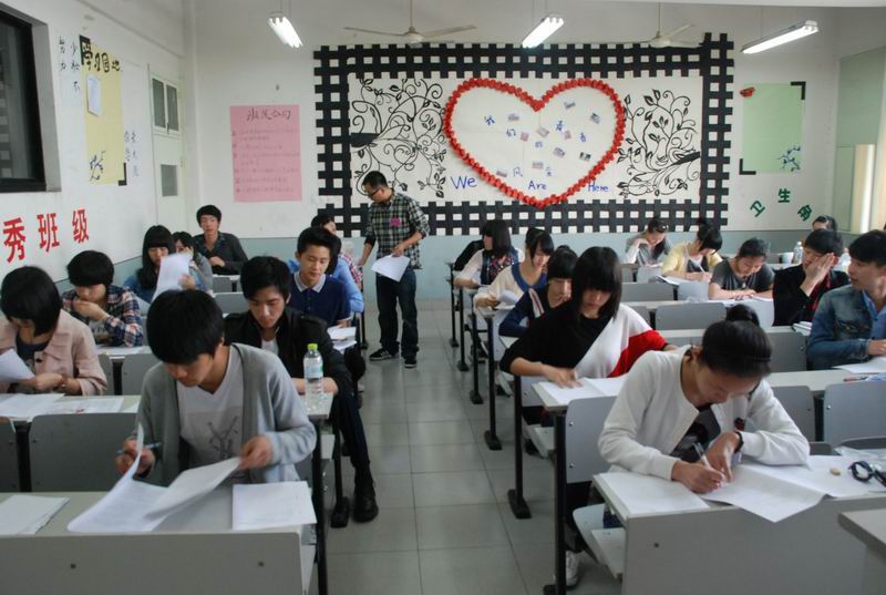 这些参加文化考试的学生都是经过第一轮综合素质测试“过关”的学生。