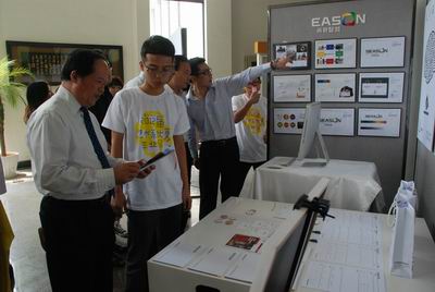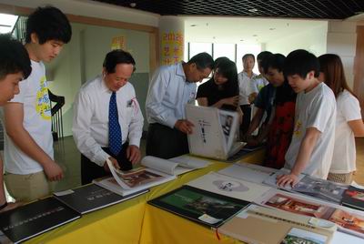 5月22日上午,经过精心筹划和准备的2012届艺术设计与人文系毕业设计作品展在图书馆正式开展。学院党委书记、院长洪致平,副院长秦学礼,各分院、系部主任、以及行政处室负责人参加开展仪式,并热情地欣赏学生作品。简朴的开展仪式由艺术系主任宋连凯主持。2012届环艺专业部分学生参加。