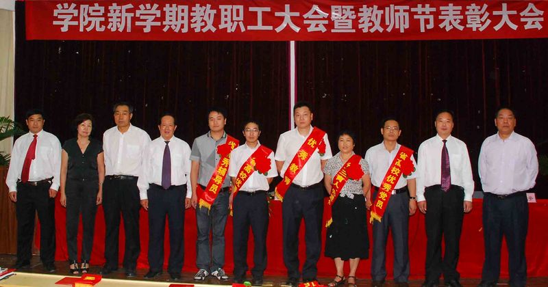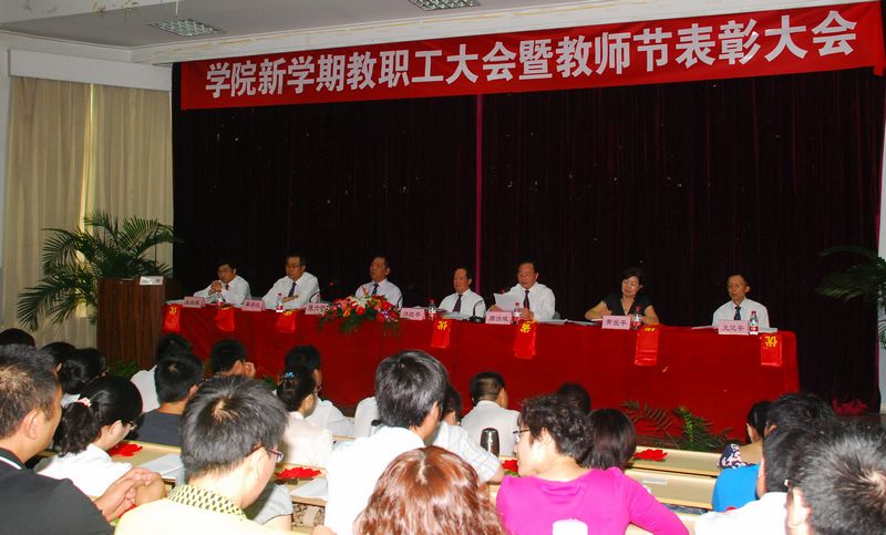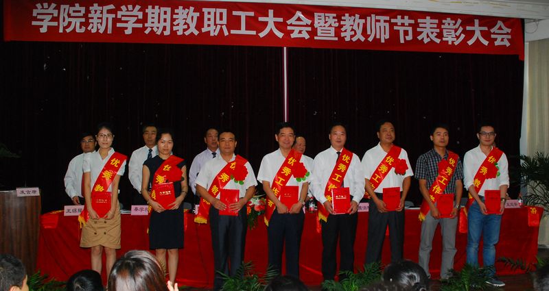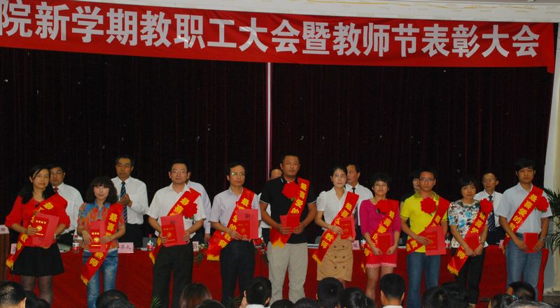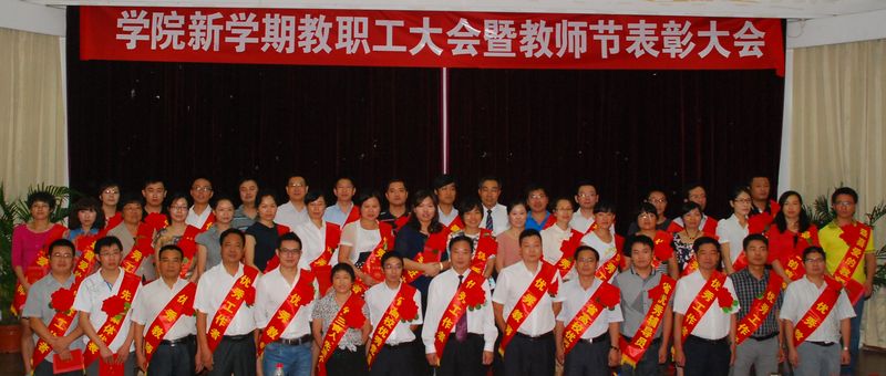 2012年9月7日,学院在一楼报告厅召开新学期教职工大会暨教师节表彰大会,部署新学期工作,隆重表彰获得省、市、学院各项荣誉的52名教职工和学院6个先进集体。