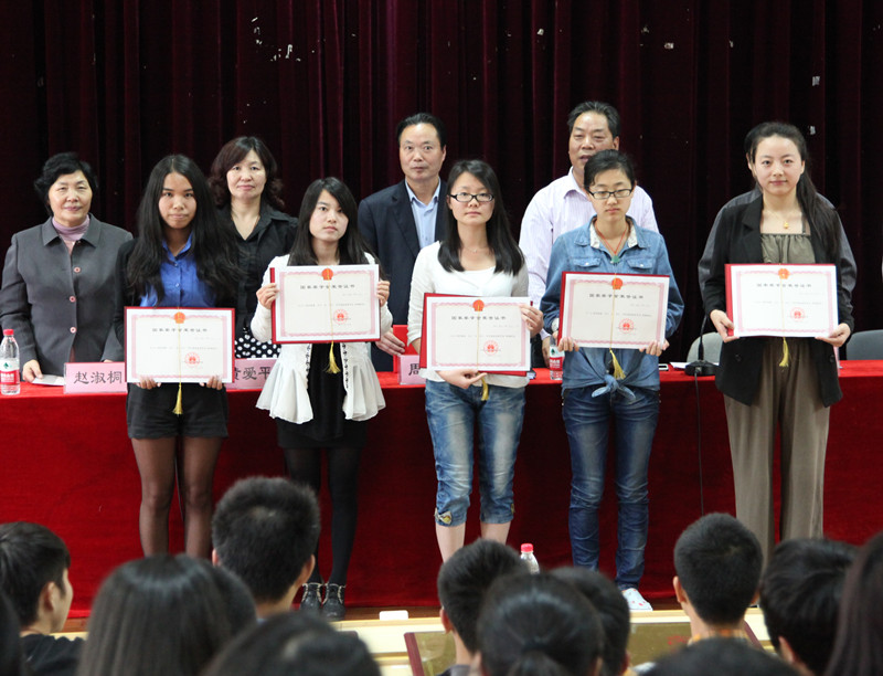 学院党委副书记、副院长周治斌宣读表彰决定,周丽欢、周婷、毛晓燕、杨叶莎、翟彩霞5名同学荣获国家奖学金,何政灵等112名学生荣获国家励志奖学金,许利莎等727名学生获优秀学生奖学金,彭贵芬等486名学生获单项奖学金。