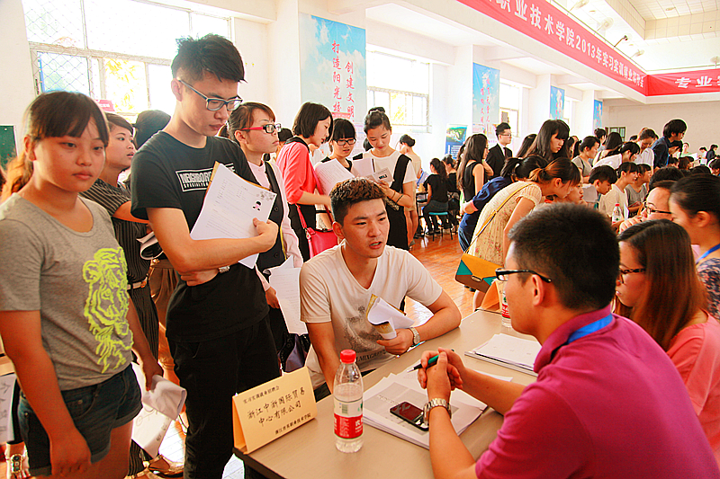 在招聘会现场,学生向学院党委书记、院长洪致平表达了对招聘会的感受:招聘单位很多,想招的人也不少;适合自己的岗位也有很多。
