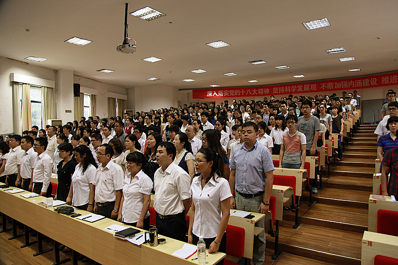 6月28日下午,学院庆祝中国共产党成立92周年暨表彰大会在综合楼一楼报告厅隆重举行。学院党委书记、院长洪致平,党委副书记、副院长周治斌,副院长陈六明、黄爱平,党委委员、组织部长谢鑫,党委委员、监察室主任陈忠春出席。全院师生员工党员、入党积极分子代表参加。周治斌主持会议。