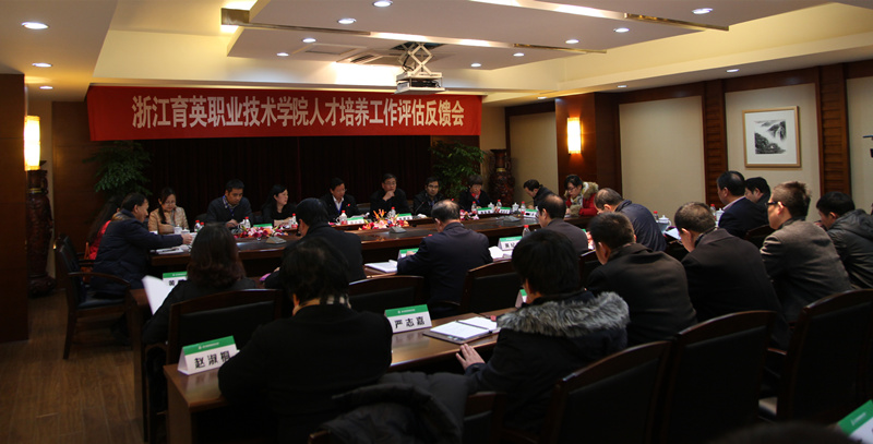 20131224下午,学院在10楼会议室召开高等职业院校人才培养工作评估反馈会。11位评估专家和杭州市教育局副局长肖锋,学院董事长黄纪云,党政领导及中层干部参加反馈会。