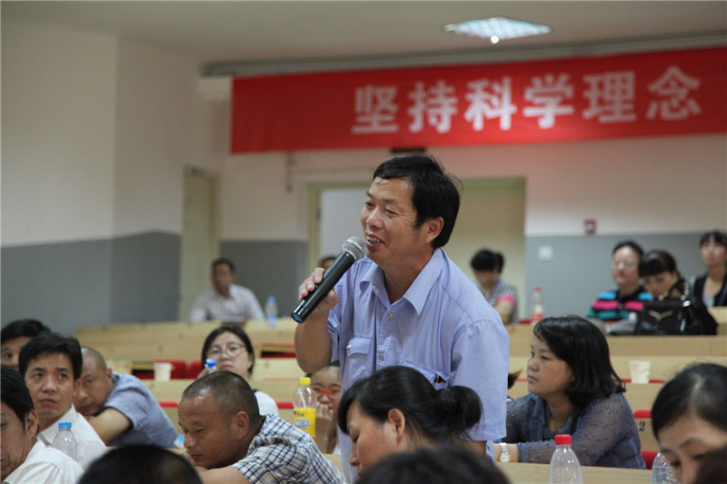 洪院长的回答热情洋溢,不时赢得阵阵掌声。原定1小时的新生家长见面会延续了半个小时。洪院长最后说,家长的关注就是我们的努力方向,我们一定不会辜负家长们的厚望。由于今天时间有限,只回答了9位家长和1名新生的问题,非常遗憾,但是不要紧,我们的院长信箱和网络咨询平台是畅通的,欢迎各位家长和学生随时提出问题,我们一定会热情回复。