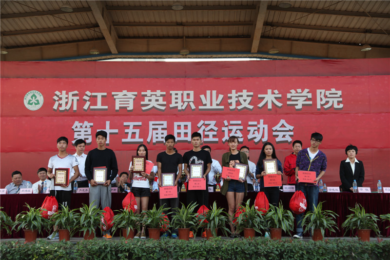 在运动会闭幕式上,学院院长洪致平,党委书记、副院长王锡耀,党委副书记、院长助理谢鑫,院长助理王敏以及分院、系及相关职能部门负责人为获奖个人和团体颁奖。