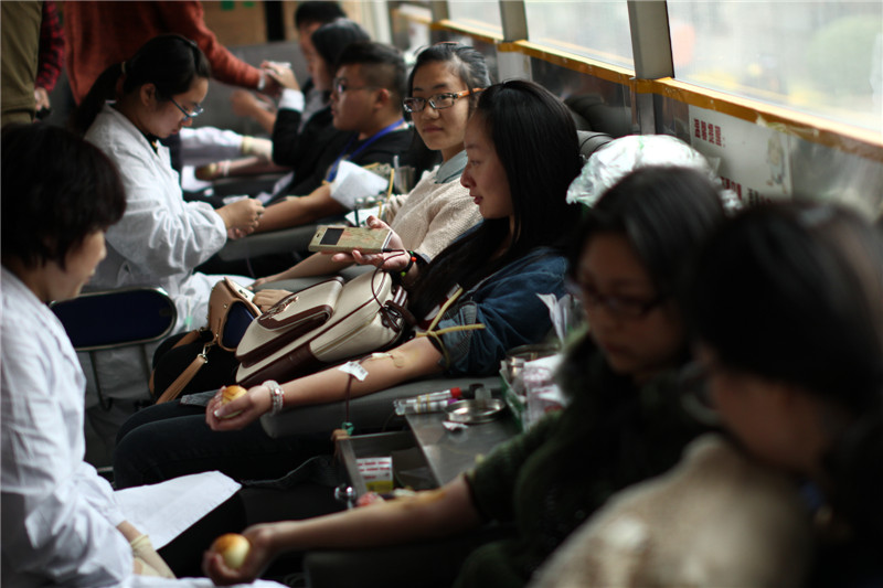不少学生都献了400毫升,13计应A班杨达已经是第二次献血了,去年献血300毫升,今年又增加了100毫升,他说,“献血对自己的身体并没有什么不良影响,更重要的是自己的鲜血能够延续和挽救他人的生命,内心里感觉还是挺神圣的。”
