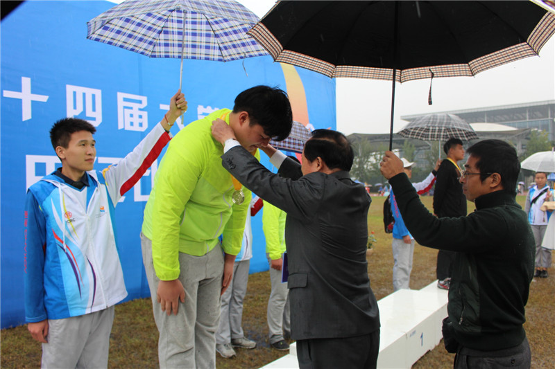 赛后,受大会委托,洪院长为男子铅球等项目获得前三名的运动员颁发奖牌和证书。