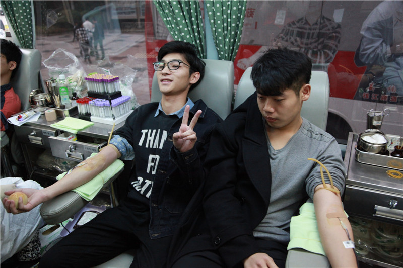 15营销C班王翔宇和虞振阳都是退伍军人,虽然是第一次献血,却都义无反顾地献了400毫升。他们说,“献血对自己有好处,也可以帮助别人。”15展示班沈蔚阳也表示,“献血不仅是一种行为,更是一种精神,能帮助别人很开心。”