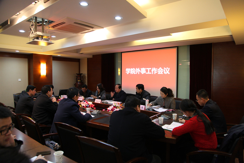 2014年12月31日,学院在十楼会议室召开外事工作会议,回顾总结了建院16年来的国际交流与合作工作所取得的成绩和经验,并对下一步外事工作进行部署。学院院长洪致平,党委书记、副院长王锡耀,副院长黄爱平,党委副书记、院长助理谢鑫,院长助理王敏出席,对外合作办学工作领导小组、项目工作组成员及相关部门负责人参加会议。