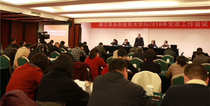 本次会议主题为“大职教观”与学院“十三五”创新发展。主要任务是学习领会2016年党政工作要点精神,坚持办学新定位,推进优化结构和规范化管理水平的提高,推进以“一个核心,三个服务”为基本内容的“大职教观”的深化落实,推进学院“十三五”时期创新发展。
