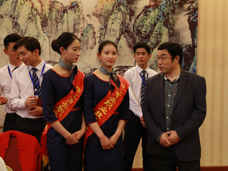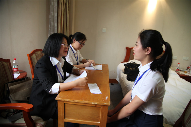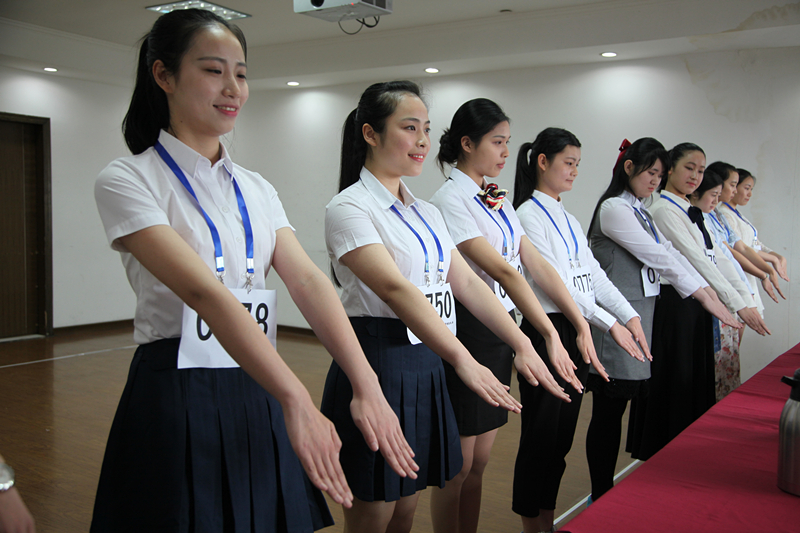 综合面试环节的考官由航空公司专家以及学院空中乘务专业教师组成,具有丰富的航空服务经验。考官们参照航空公司选拔乘务员的标准,主要通过考生自我介绍考察口头表达能力,通过他们的站姿、走姿和肢体语言来考察身材、气质,通过提问考察考生沟通能力、应变能力和亲和力等综合素质。