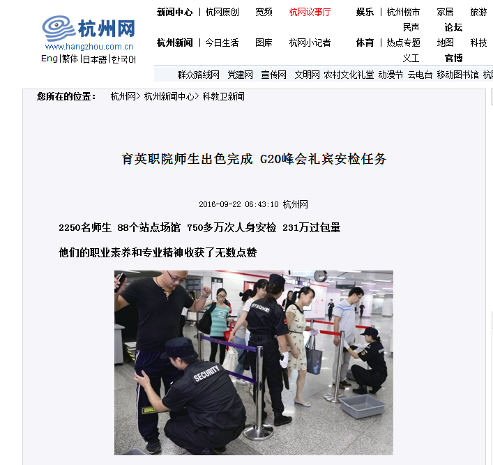 多家媒体报道我院2250名师生圆满完成G20杭州峰会礼宾安检