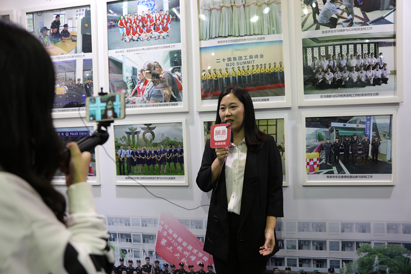 都市快报快直播平台、网易直播平台对育英展区进行专题直播报道,现场采访了育英师生,受到社会关注。在户外广场的青荷舞台上,董媛老师携四名学生接受现场访谈,介绍了学院师生满怀热情、圆满完成G20杭州峰会服务工作的情况。