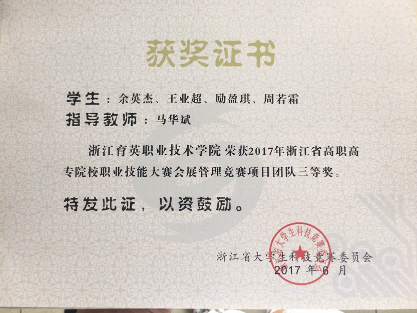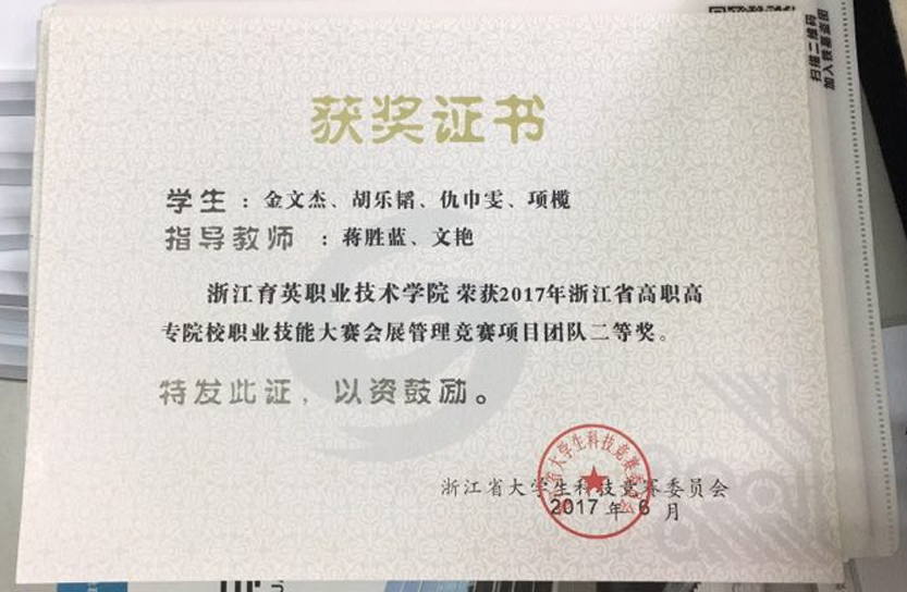 创意设计分院会展策划与管理专业师生在本次浙江省高职高专院校职业技能大赛会展管理竞赛项目中,共获团体二等奖2个,团体三等奖1个。本次大赛隶属于于浙江省大学生科技竞赛,由浙江省教育厅颁发获奖证书。本赛项包括展览策划、会议策划、节事活动策划三个方向,各参赛队围绕会展项目的题材分类,自行选题,组织策划。要求论据充分,理论实,突出方案的创意性和可操作性。