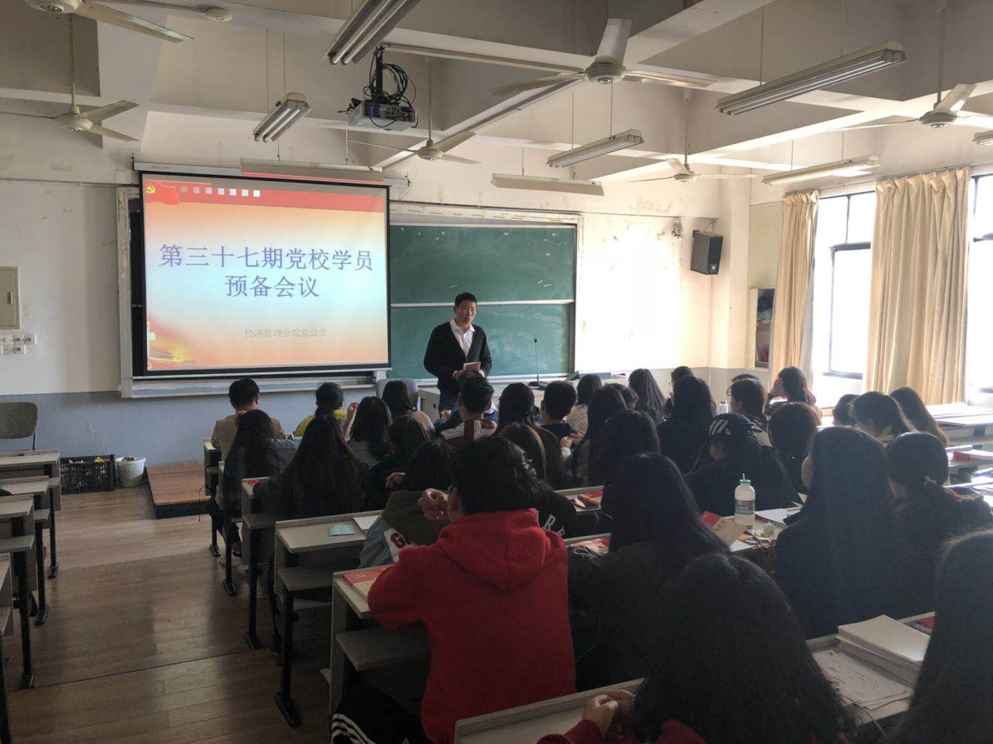 2017年11月1日12点30分经济管理分院在1315教室举行了党校学员预备会议,会议目的旨在让入党积极分子进一步学习党的政策,融入党的理念,贯彻党的精神。更重要的是端正学习态度,认真学习,完成本期党校课程。会议由分院组织委员庞璁老师主持,分院党总支副书记谢剑峰、学生第一、第二党支部书记杨梦乐、冯建军出席会议。会议首先由组织员庞璁老师向学员们介绍了分院党总支的构成和各专业所属支部,并介绍了各支部书记。同时强调了学习要求,如:严格按教学计划要求,完成学习内容;严格遵守考勤纪律,不得弄虚作假等。