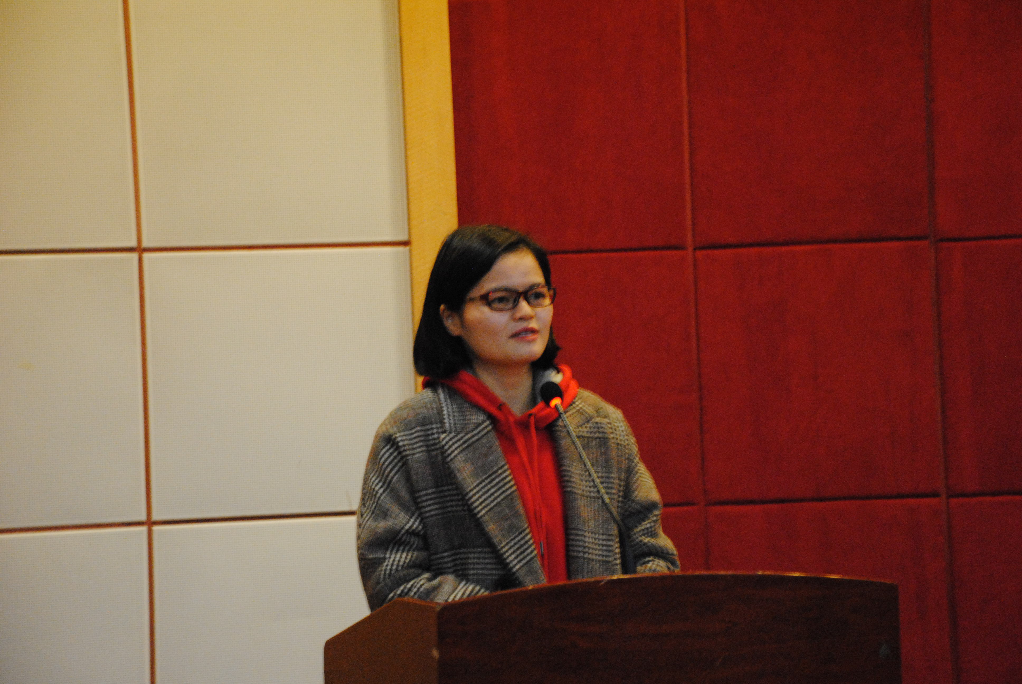 安检教研室主任汪迎春副教授作为教师代表发言,指出了育英学院民航安全技术管理专业的四大优势和四大特色,承诺会倾力传授知识,认真授课。