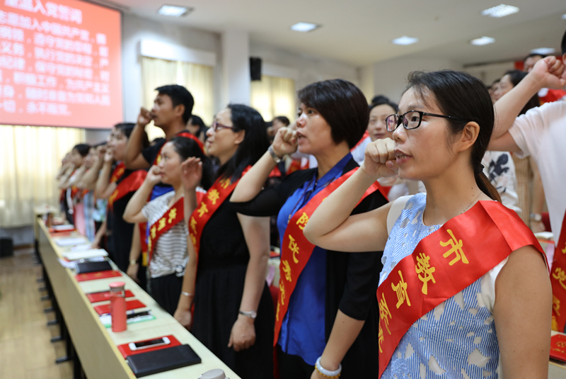 全体党员在组织部长邬佳带领下重温入党誓词 。