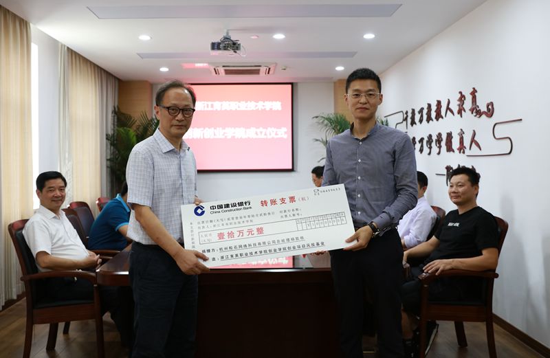 成立仪式上还进行了创新创业基金捐助活动,由商务贸易分院2012级毕业生杨凯栋捐助学院10万元人民币,成立创业天使基金。该基金主要用于学院创新创业教育学生的前期资助与激励奖励,学院也将1:1配套投入,使基金能服务于更多有志向、有行动的在校创业学生。