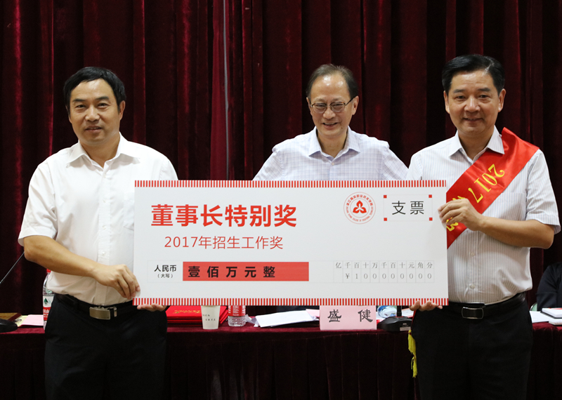 黄爱平宣读董事长特别奖,表彰2017年招生工作。