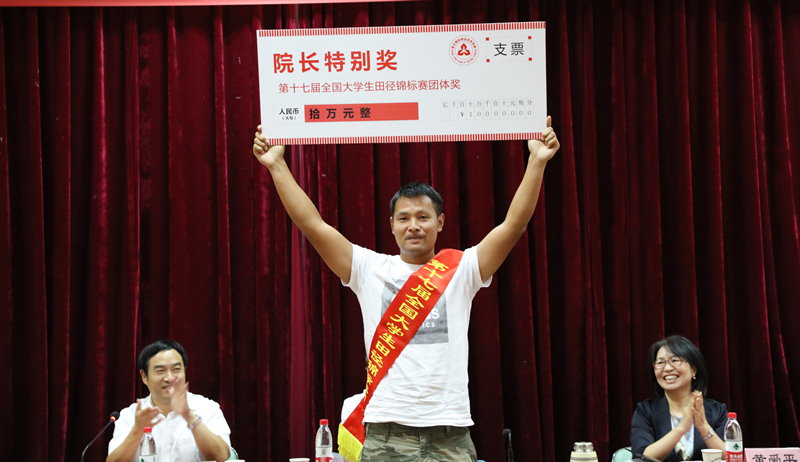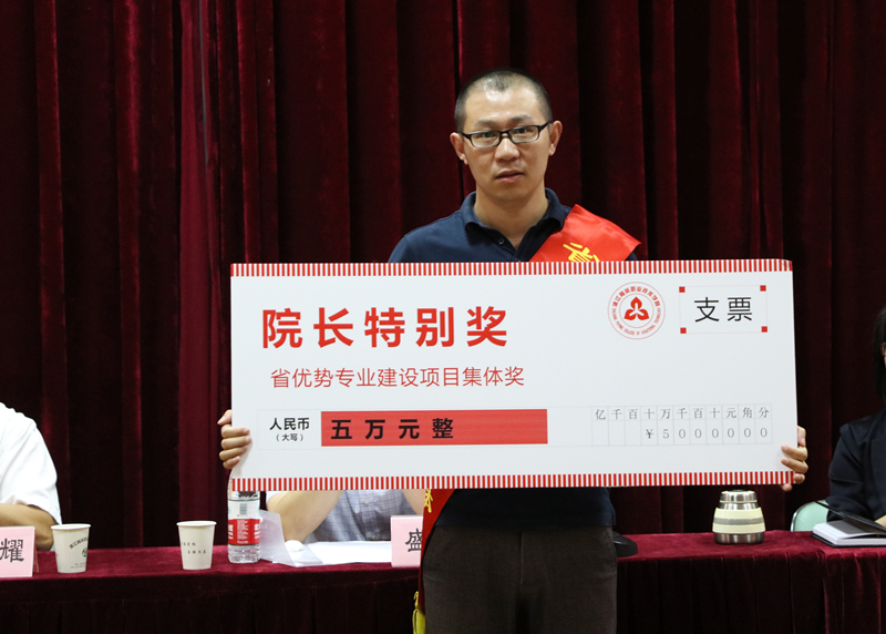 王敏宣读院长特别奖,表彰无偿献血先进集体、第十七届全国大学生田径锦标赛学院体育团队、省优势专业建设项目集体和第八届“外教社杯”全国高校外语教学大赛(职业院校组)浙江赛区一等奖获得者黄一旸。