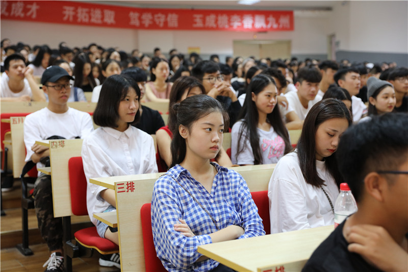 盛健分别与民航交通分院、信息技术分院、商务贸易分院的学生亲密接触,他像父亲对孩子说话一样,娓娓道来。当讲座题目《当18岁的你遇上19岁的TA》一亮出,就吸引了同学们的注意,育英学院正如那美丽大方,聪明伶俐,身体强健,具有热血情怀的翩翩少年,而处在花样年华18岁的“小石器”们正好遇上19岁的TA,相信同学们一定会爱上育英。盛院长通过解读“厚德载物,自强不息”校训,告诉大家应当注重品格养成,唤起成长自信。他说,作为大学生,要学会自我管理,富有责任感,要敬重学业,尊重自己的选择,敬重每一项学习,也要学会融入社会,明白如何善待他人,不断提高自己的沟通和表达能力。盛院长说,十八九岁的年纪,一切皆有可能,社会在发展,要相信人心向善,要认真学习,以阳光的心态看待自己看待这个世界,丰富内涵,提升品位,相信自己的人生会越来越好。盛院长还根据每个分院不同的专业特色,分别为同学们送上寄语,并答疑释惑,场面轻松温馨。同学们说,盛院长的讲话,可谓推心置腹、情深意浓。