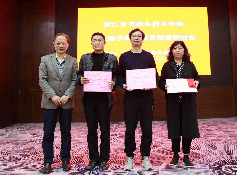 我院招就处处长方明对各合作中职学校近三年的合作情况,升学率、报到率等进行通报。会议对升学率排名前三的杭州开元商贸职校国际商务专业、上虞职教中心电子商务专业、浙江信息工程学校计算机应用专业和我院国际经济与贸易、计算机应用技术、电子商务三个专业教研室进行表彰。