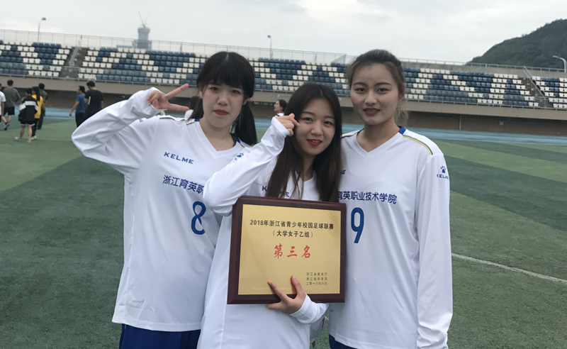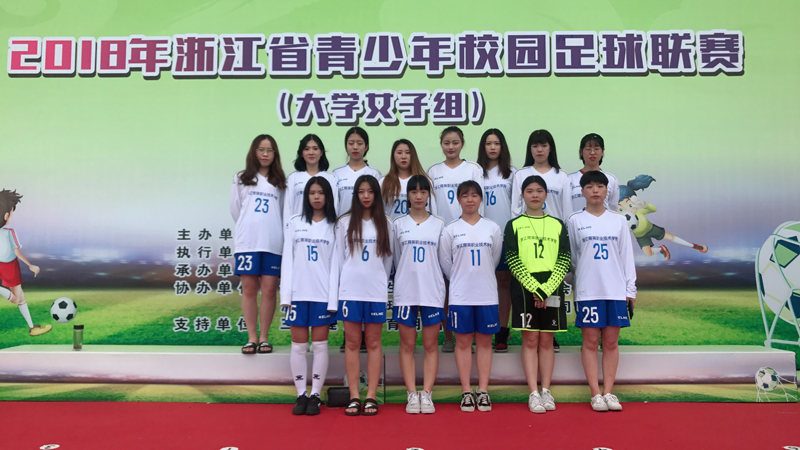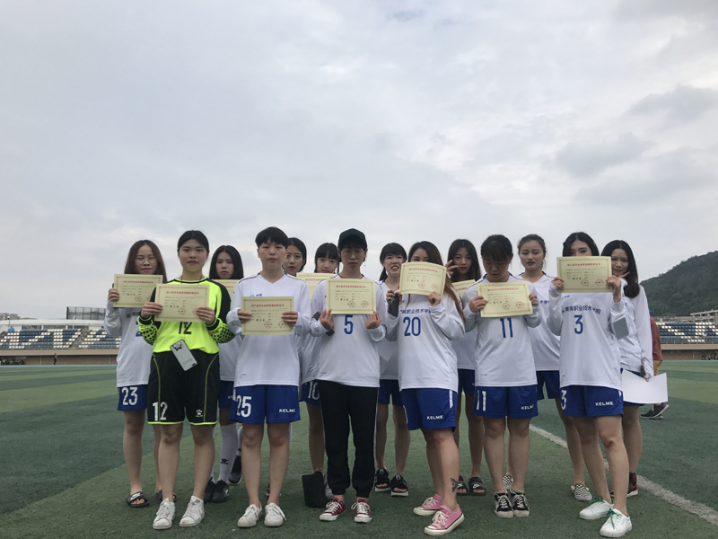 女足队员为:16国贸C班黄荧荧,16国贸C班吴盈莹,16跨境电商班周佳洁、严芳英,17国贸C班余倩茹,17国贸五年一贯A班周莹芝、孙金萍、贺璐璐,16应用日语汤嘉妮,17空乘B班陆灵飞,17空乘I班赵佩玲、廖小涵,17空乘H班骆冰,17计应D班周佳丽。