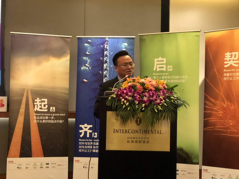 6月15日,我院酒店管理专业“现代学徒制'洲际校园班’”开班仪式在杭州洲际酒店纽约厅隆重举行,洲际酒店集团浙江区地区总经理李国雄、大中华区早期职业发展经理刘飞、浙江分区HR总监吴青艳和杭州洲际酒店所有中高层领导,我院副院长王敏,经济管理分院院长谢厚华、副院长周岚等出席,酒店管理专业全体教师和18名学员参加开班仪式。
