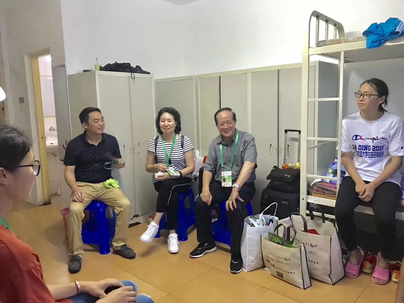 7月17日,学院名誉院长洪致平,副院长黄爱平等领导赴大庆比赛现场慰问参赛师生,激励运动员们奋勇拼搏。