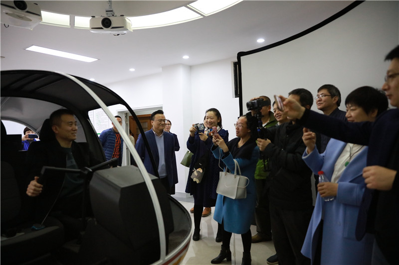 考察团一行还参观了学院跨境电商实训室、创意设计中心、图书馆、空客330全真模拟机舱客舱等实训室。