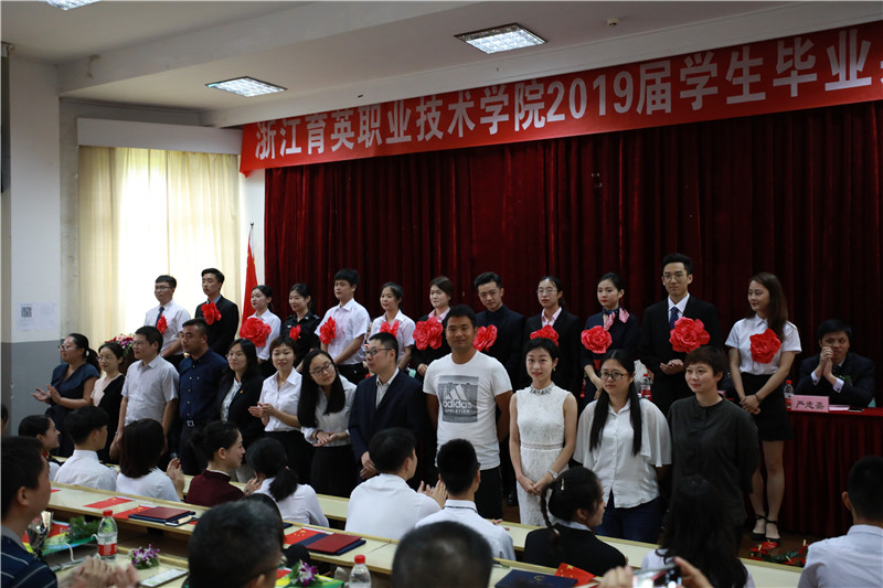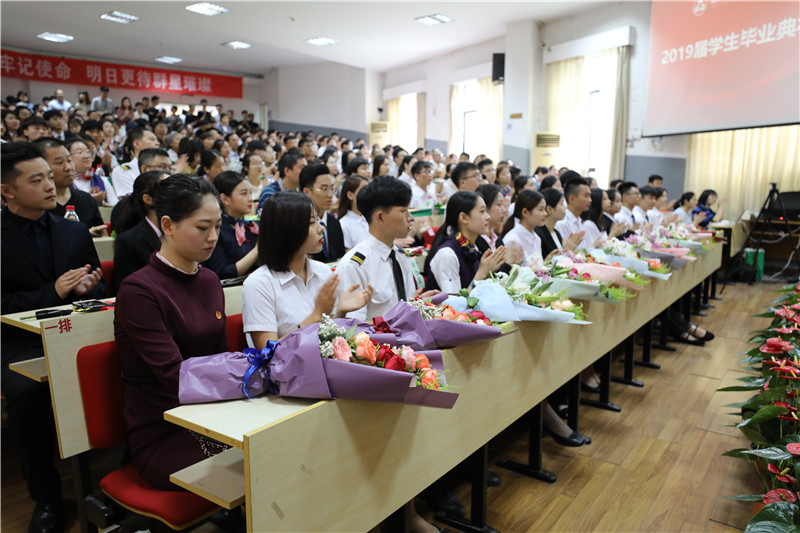 全体毕业生在谢鑫的主持下,举行了毕业礼,毕业生代表向教职工代表、家长代表、企业代表献花,师生代表为优秀毕业生代表佩戴大红花。