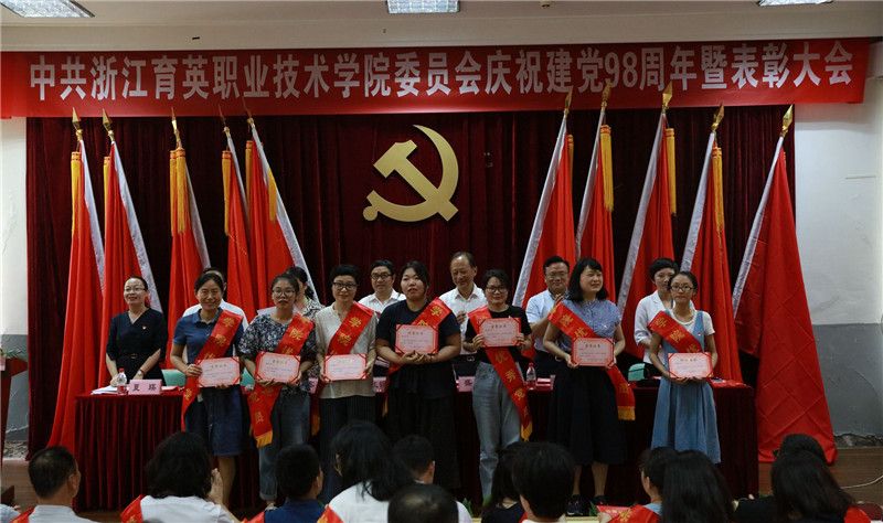 刘飞燕、谢厚华、王叶、朱尧、黄汶俊等5名杭州市教育系统优秀共产党员,商务贸易分院党总支部、经济管理分院党总支部、民航交通分院教工党支部、信息技术分院学生第二党支部、创意设计分院学生第二党支部等5个学院先进基层党组织;唐丽莹等20名教职工优秀党员,叶耀远等 7名学院优秀学生党员;许琼华等7名学院优秀党务工作者;民航交通分院第八党章学习小组等12个学院先进党章学习小组受到表彰。