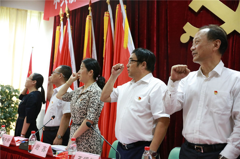 全体党员在党委委员、学工部长邬佳带领下重温入党誓词,并在领唱人王锡耀、赵燕、裘波、汪薏群带领下齐声高歌《我和我的祖国》。