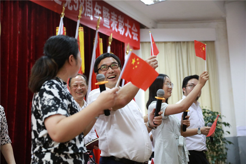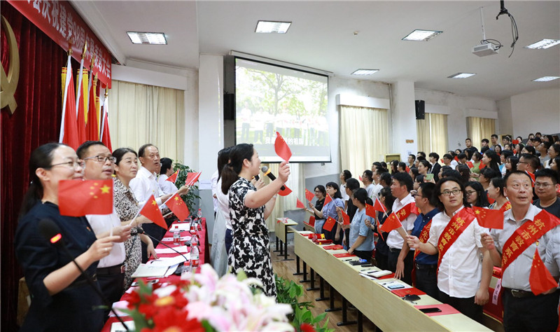 2019年7月1日下午,学院在一号报告厅隆重举行庆祝建党98周年暨表彰大会。学院领导盛健、王锡耀、谢鑫、王敏,党委委员张中新、夏瑛、邬佳出席,全体教职工党员及部分学生党员参加会议。会议重温了入党誓词,表彰了优秀党员、优秀党务工作者、先进基层党组织和先进党章学习小组等。党委副书记谢鑫主持会议。