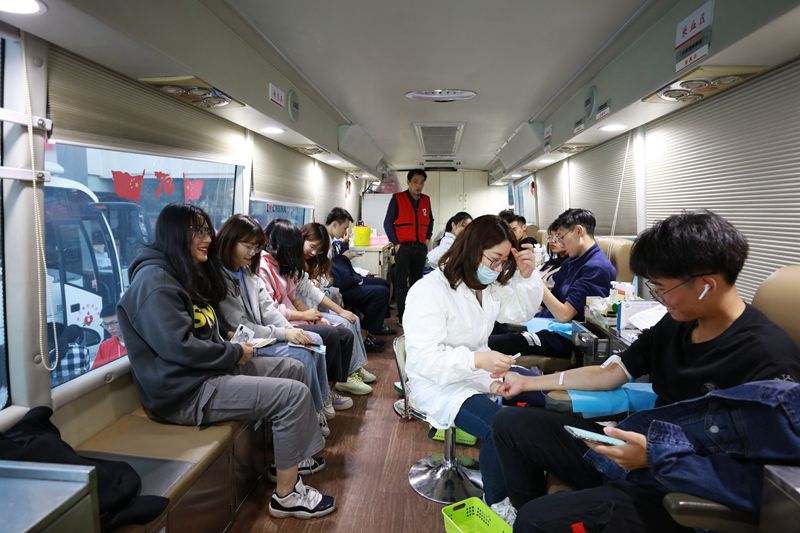 11月14日上午10:00,学院无偿献血活动在一号教学楼广场举行。882名师生献血268070毫升。