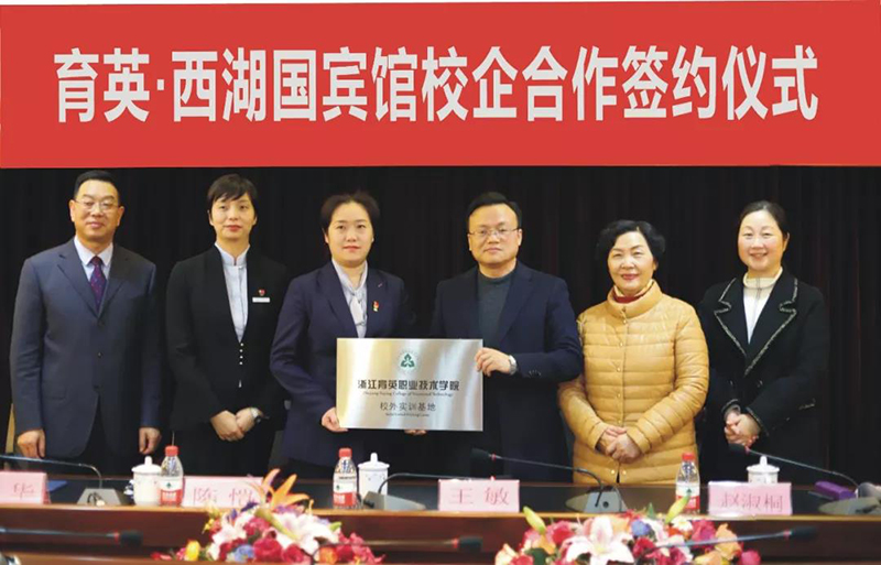 长期以来,育英学院与西湖国宾馆紧密合作,并为其输送了一批批优秀毕业生。翟华经理介绍,毕业生钱宇凯担任宾馆主持人、抖音团队长,个人工作表现及业绩突出,获得2018年度杭州西湖国宾馆“名园之星”、2019年销售达人奖;周希云是G20杭州峰会期间实习后留用在中餐厅就业,只要有国宾接待宴会等重要活动都会参与服务。