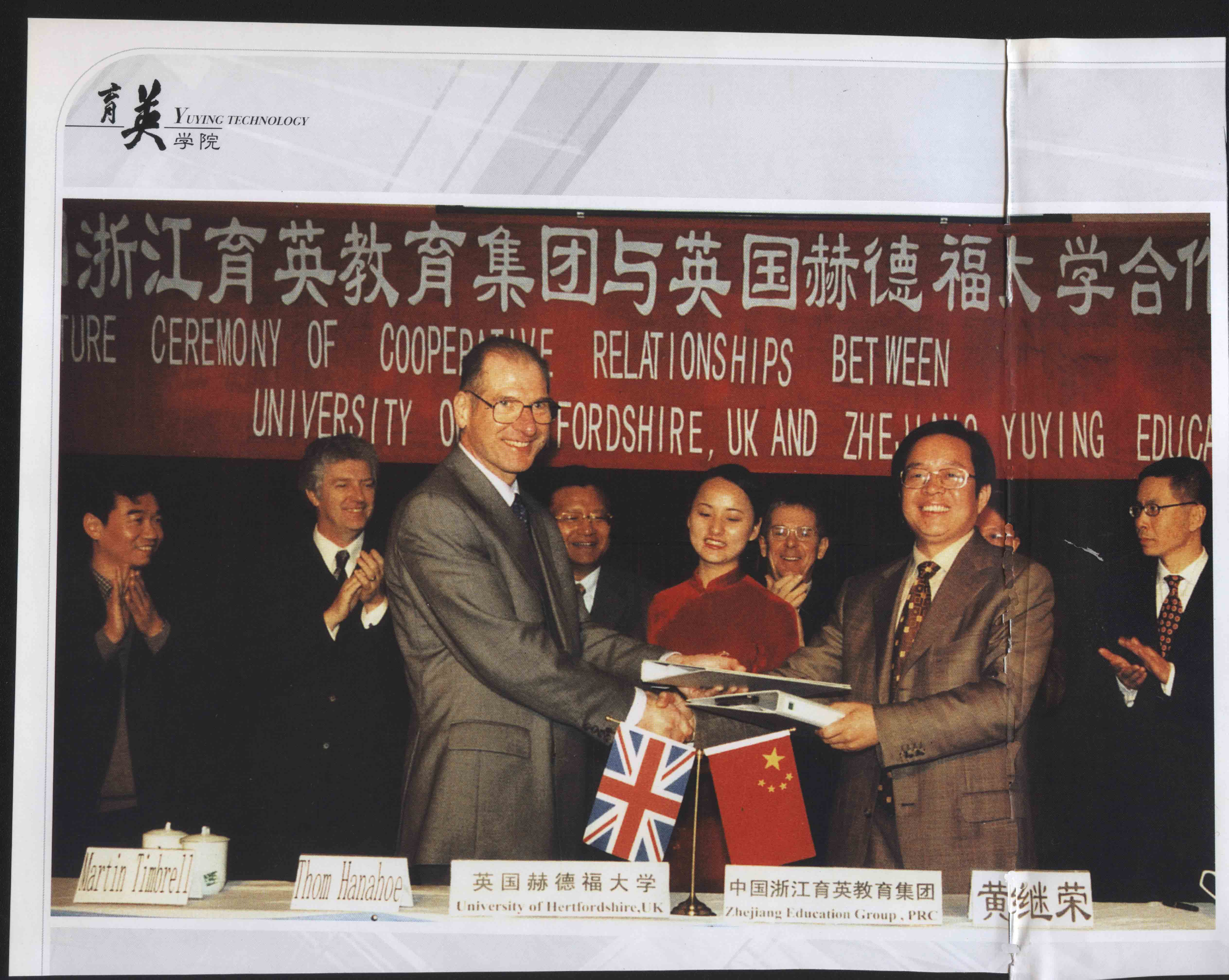 2002年黄纪云董事长与英国赫德福大学签署合作办学协议