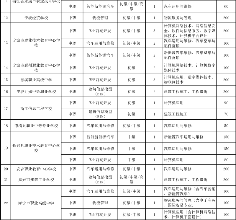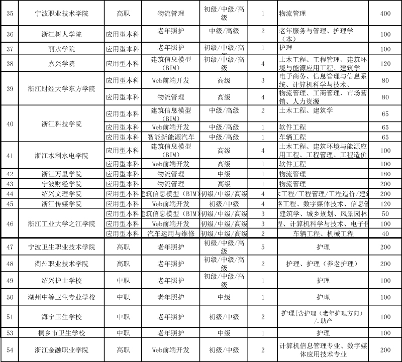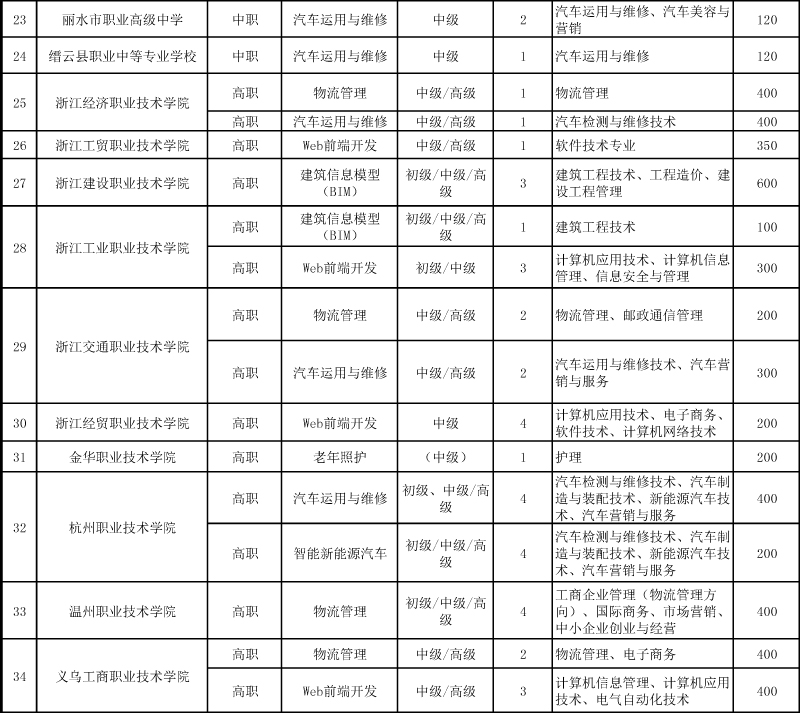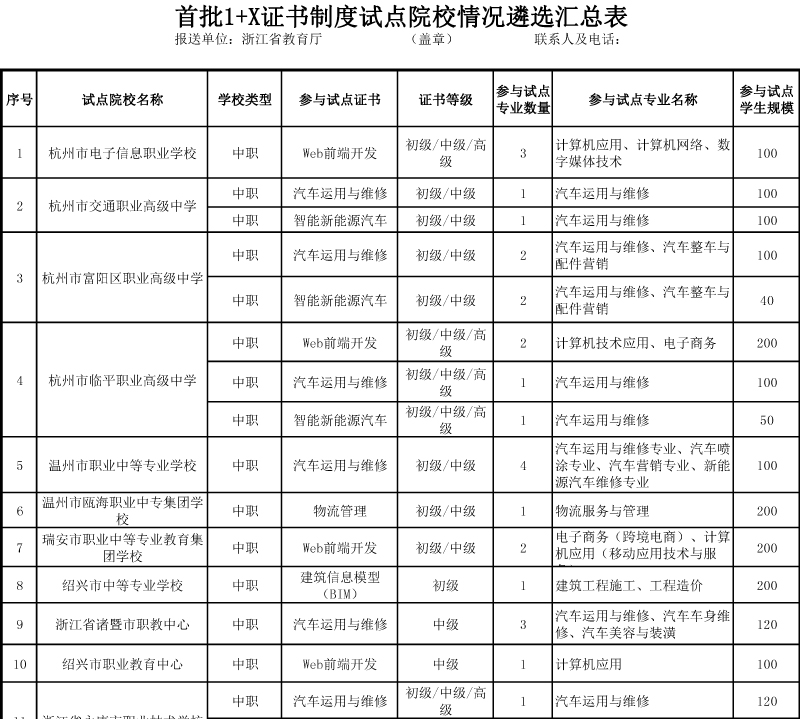 浙江省首批1+X证书制度试点院校情况遴选表(含试点人数)