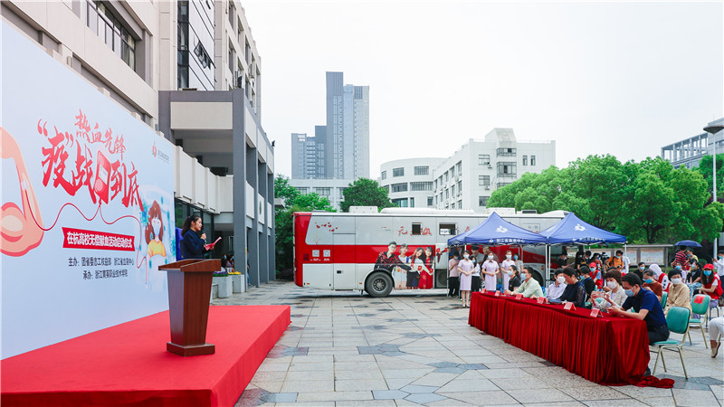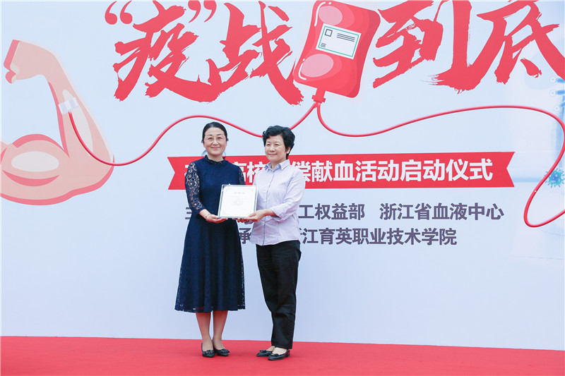 5月21日上午,“热血先锋 疫战到底”高校献血活动启动仪式在育英学院举行。浙江省血液中心副主任徐健,学院党委副书记、副院长谢鑫出席活动。徐健代表省血液中心为学院送上感谢信,感谢校方在关键时刻伸出援手,为疫情期间高校献血做出带头示范作用。浙江省血液中心团委书记周丽为学院授“热血先锋、‘疫’战到底”流动红旗。本次活动,根据疫情防控的要求,无偿献血分批预约进行,共计305名师生参与无偿献血,累计献血95080 毫升。